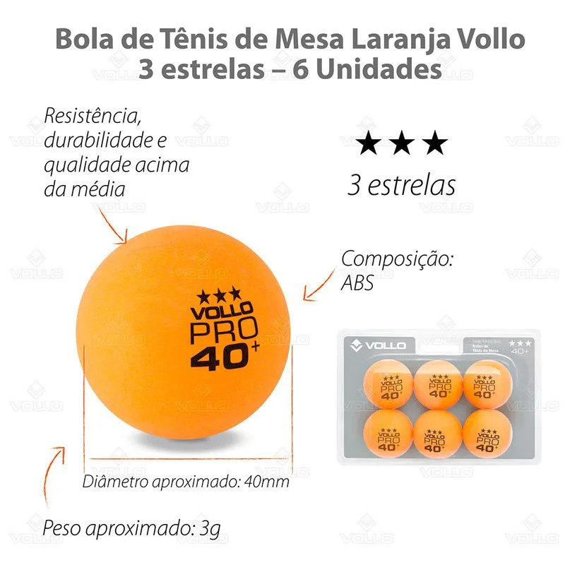 BOLA DE TENIS DE MESA TM 3 ESTRELAS LARANJA C/ 6 VOLLO