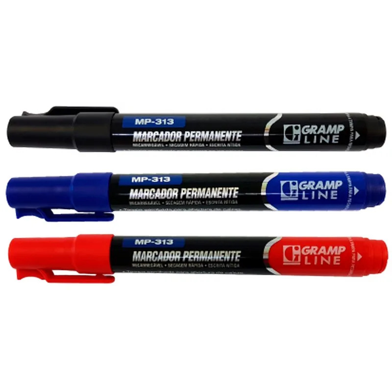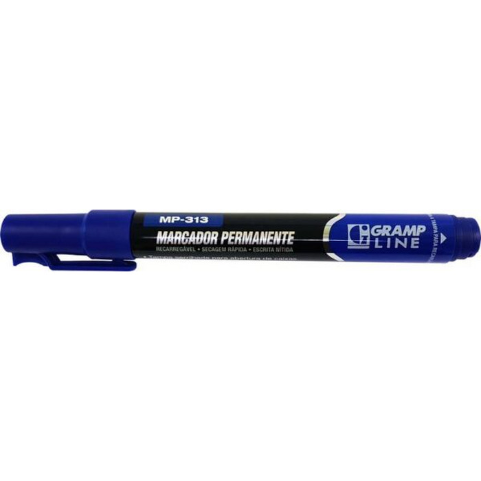 CAIXA DE MARCADOR PERMANENTE MP-313 AZUL C/12 GRAMPLINE