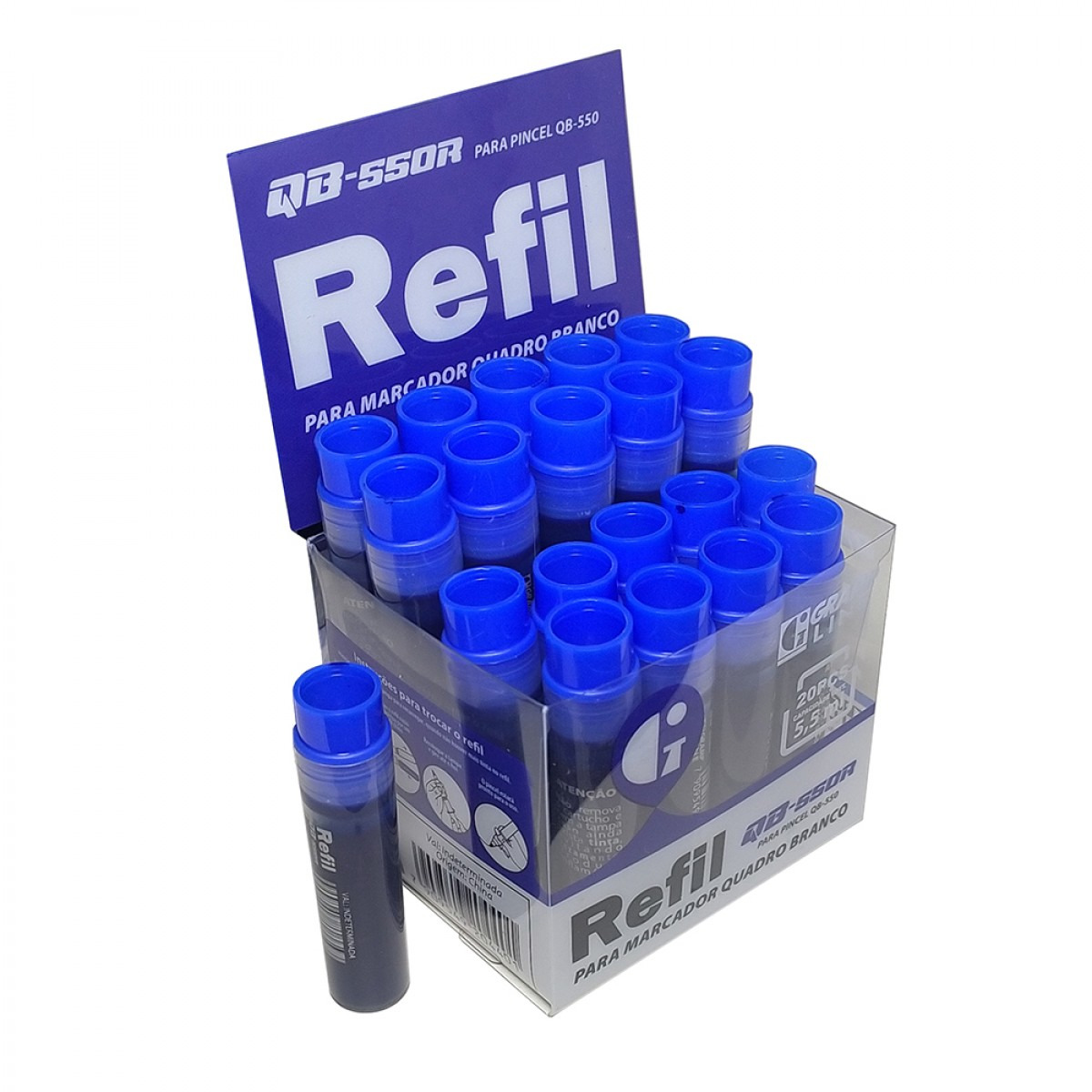 CAIXA REFIL DE TINTA P/ MARCADOR QB-550R 5,5ML AZUL C/ 20 GRAMPLINE