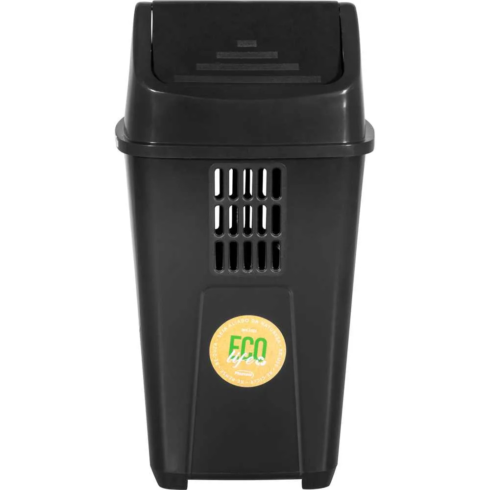 LIXEIRA DE 50 LITROS C/ TAMPA BASCULANTE PRETA PLASVALE