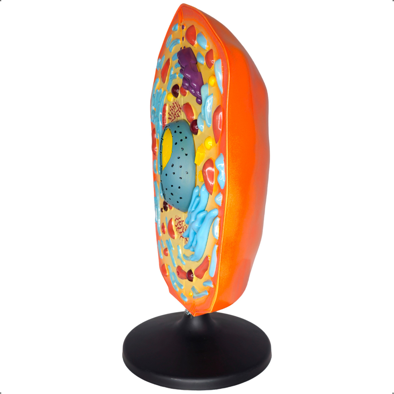 Precisão anatômica: Representação precisa das organelas celulares, incluindo núcleo, mitocôndrias, retículo endoplasmático liso e rugoso, aparelho de Golgi, lisossomos e muito mais, com destaque para a diferenciação em cores para uma melhor compreensão visual.